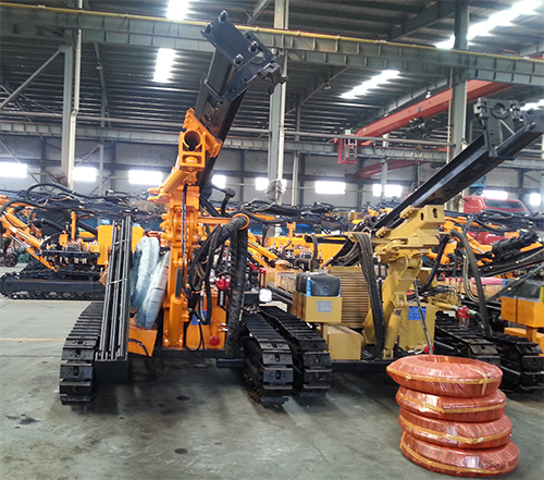 KG915/YC915 型露天潛孔鉆車(chē)以KG910B鉆車(chē)為基礎(chǔ),對(duì)鉆臂、鉆桿架和操作臺(tái)等進(jìn)行創(chuàng)新設(shè)計(jì)了,主要有以下特點(diǎn)。