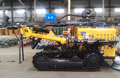 KG935/YC935 型露天潛孔鉆車以KG930B鉆車為基礎(chǔ),對行走部件、滑架部件、鉆臂部件及整機(jī)布局等進(jìn)行創(chuàng)新設(shè)計了,主要有以下特點: