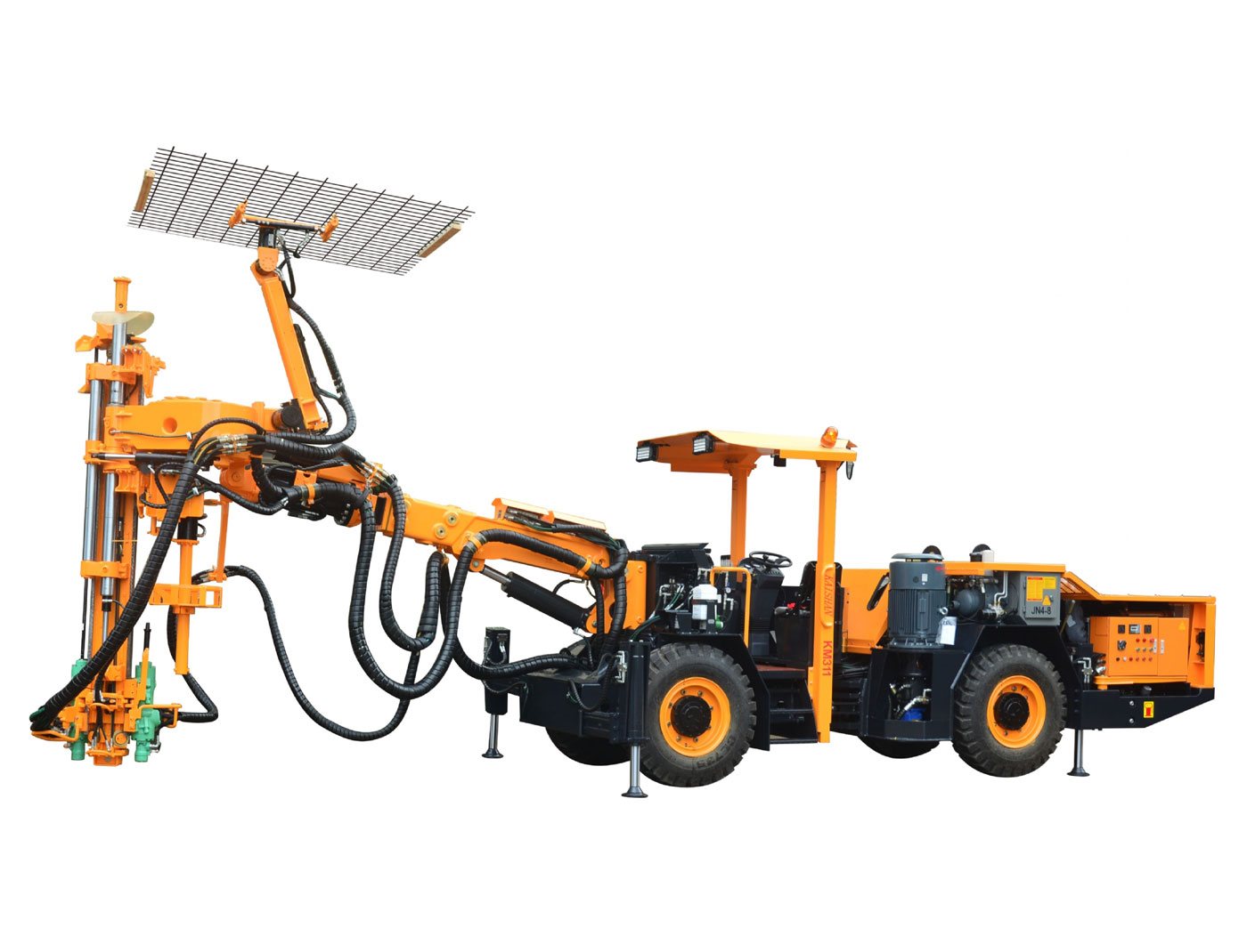 • 功能齊全。采用雙工位推進梁,配有可容10根錨桿的儲桿倉,選配掛網模塊,可以完成鉆孔、掛網和安裝錨桿等工作。