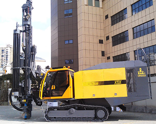 "開山"牌KT20型露天潛孔鉆車是開山集團在多年開發(fā)生產(chǎn)潛孔鉆車的基礎(chǔ)上,針對大型露天礦山的需求,而精心設(shè)計的新型鑿巖設(shè)備。該鉆車行走、推進、回轉(zhuǎn)及角度調(diào)整等動作均采用液壓驅(qū)動,動力強勁;配用高風壓螺桿機頭及高風壓氣動沖擊器,鑿巖效率高;配有液壓干式集塵器收集粉塵,減少對環(huán)境的污染;并配有液壓機械手及鉆桿庫拆缷鉆桿、浮動接頭保護鉆桿螺紋,一個人即可拆缷鉆桿;空調(diào)駕駛室提供舒適的工作環(huán)境及自動控制防卡閥減少卡鉆機率。鉆車具有整體性好、自動化程度高、鑿巖效果好、環(huán)保節(jié)能、操作方便、機動靈活、行駛安全等特點。