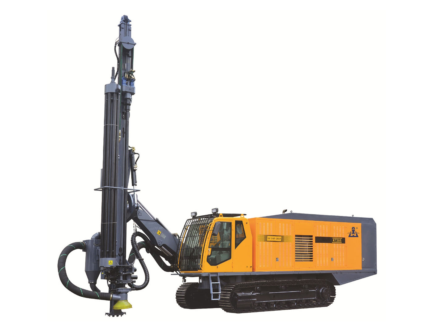 "開山"牌KT20S型露天潛孔鉆車是開山集團在多年開發(fā)生產(chǎn)潛孔鉆車的基礎(chǔ)上,針對大型露天礦山的需求,而精心設(shè)計的新型鑿巖設(shè)備。該鉆車行走、推進、回轉(zhuǎn)及角度調(diào)整等動作均采用液壓驅(qū)動,動力強勁;配用高風壓螺桿機頭及高風壓氣動沖擊器,鑿巖效率高;配有液壓干式集塵器收集粉塵,減少對環(huán)境的污染;并配有液壓機械手及鉆桿庫拆缷鉆桿、浮動接頭保護鉆桿螺紋,一個人即可拆缷鉆桿;空調(diào)駕駛室提供舒適的工作環(huán)境及自動控制防卡閥減少卡鉆機率。鉆車具有整體性好、自動化程度高、鑿巖效果好、環(huán)保節(jié)能、操作方便、機動靈活、行駛安全等特點。