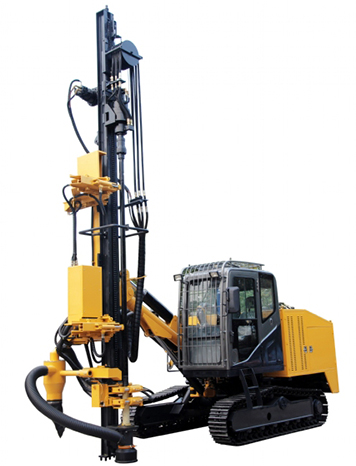 KY9S型露天潛孔鉆車的行走、推進(jìn)、回轉(zhuǎn)及角度調(diào)整等動(dòng)作均采用液壓驅(qū)動(dòng),動(dòng)力強(qiáng)勁;沖擊采用高風(fēng)壓氣動(dòng)沖擊,鑿巖效率高;配有液壓干式集塵器收集粉塵,減少對(duì)環(huán)境的污染。鉆車還配有直線式接缷桿系統(tǒng)、浮動(dòng)接頭和自動(dòng)噴油裝置(保護(hù)鉆桿螺紋)、空調(diào)駕駛室(提供舒適的工作環(huán)境)、自動(dòng)控制防卡釬系統(tǒng)(減少卡鉆機(jī)率)等模塊。鉆車具有自動(dòng)化程度高、節(jié)能高效、舒適環(huán)保、操作方便、行駛安全等特點(diǎn)。