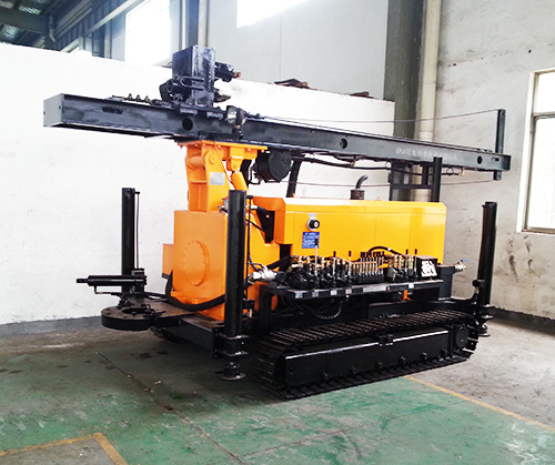 配套大扭矩液壓馬達(dá)回轉(zhuǎn)以及大缸徑液壓油缸推進(jìn),名廠發(fā)動(dòng)機(jī)為液壓系統(tǒng)提供動(dòng)力,兩級(jí)空濾以及空壓機(jī)進(jìn)氣設(shè)計(jì),延長柴油機(jī)的使用壽命。獨(dú)特的泵組設(shè)計(jì)方便維修,降低維修成本。集中控制的液壓操縱臺(tái),方便操作。該鉆機(jī)采用工程機(jī)械專用履帶底盤,越野性能強(qiáng)。獨(dú)立的模塊設(shè)計(jì),可使鉆機(jī)裝在卡車上,增加其機(jī)動(dòng)性。組合式的定位器,可根據(jù)不同型號(hào)的鉆桿和沖擊器進(jìn)行調(diào)整更換定位盤,保證定位定心準(zhǔn)確、可靠。