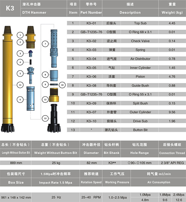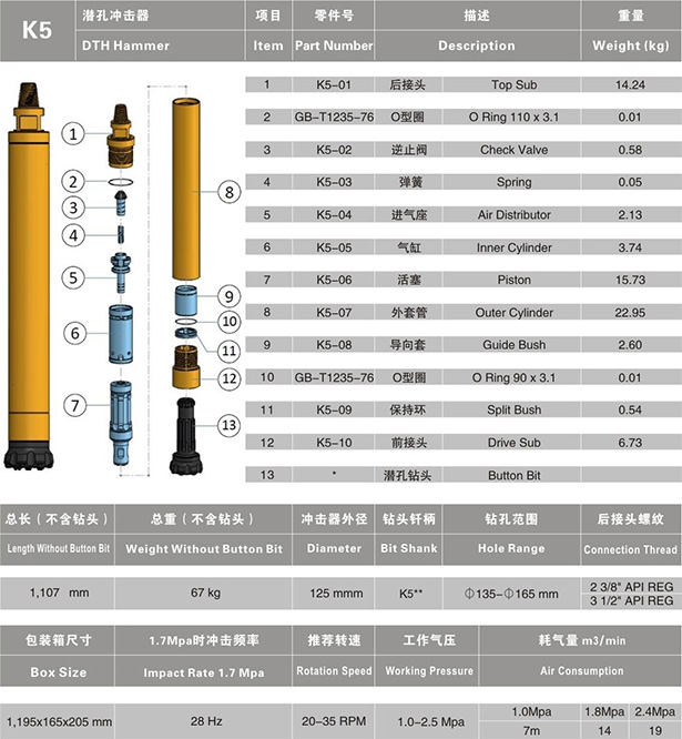 HD55C | 1160 | 72.5 | 125 | KD55C/DHD350Q | 135-155 | API 23/8"Reg |