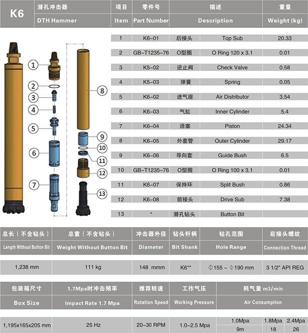 HD75A | 1258 | 120 | 165 | Cop64/DHD360 | 175-216 | API 31/2"Reg |